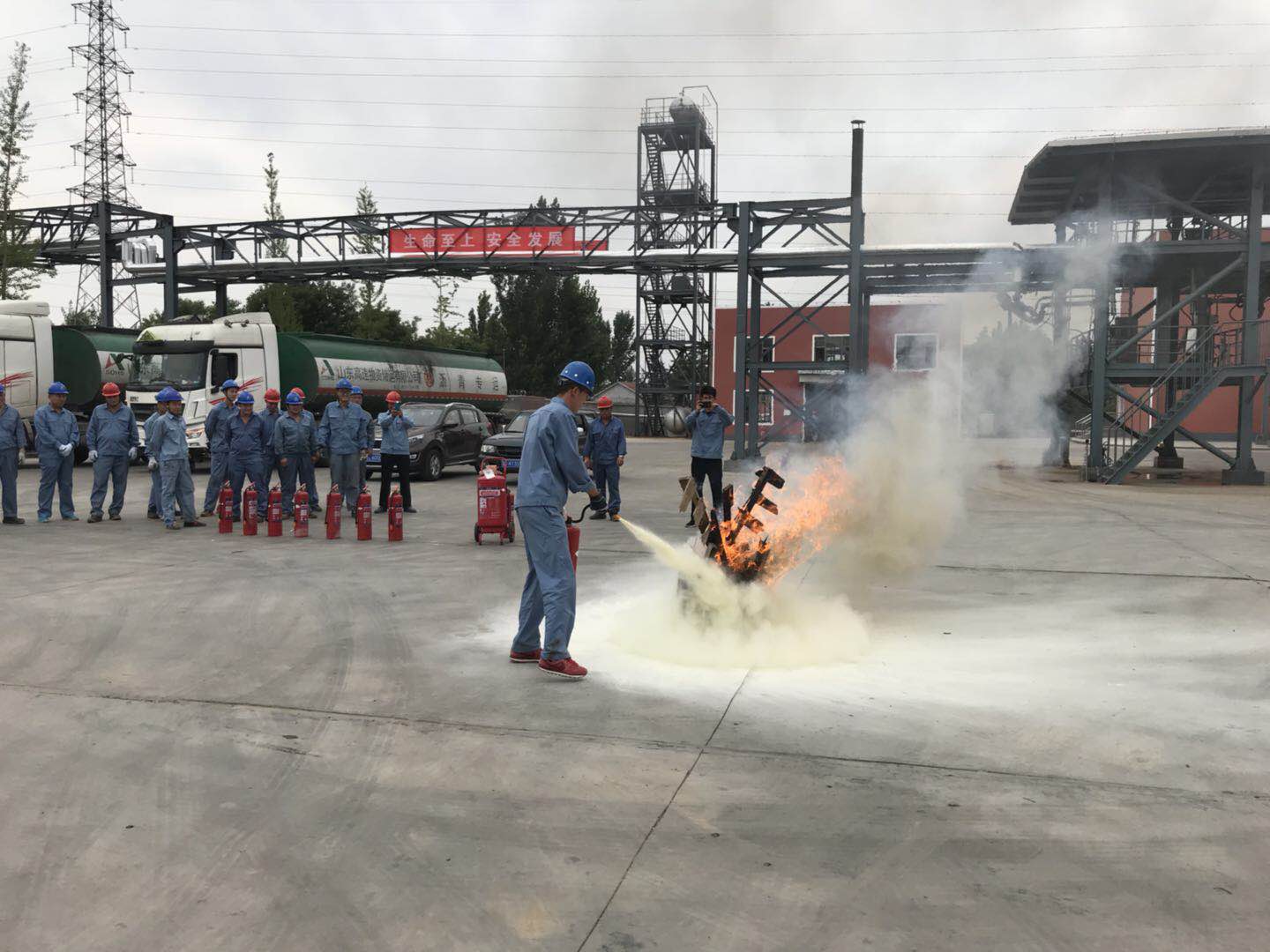 2018年6月24日下午,儲運公司在廠區舉行2018年應急救援演練。整個演練共分為瀝青泄漏事故處理、現場模擬火災疏散急救與室外消火栓操作演練三個過程,培訓及整個演練歷時3小時,涉及人員30余人。本次應急救援演練,從火情發生到疏散解救、撲滅火源共歷時20分鐘,從發現瀝青泄漏到全面清理完畢共歷時30分鐘,及時、有效地控制了事故的擴大,保障了人身安全,避免了財產損失。同時,對演練過程中出現的問題,及時總結經驗教訓,并及時修改預案。通過本次實戰演練,提高了全員事故應急意識,增強員工在緊急狀況下的應變能力和自我防護潛質,為公司加強安全生產管理進一步夯實了基礎。